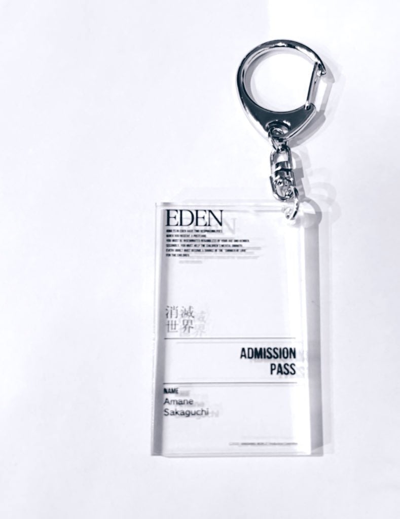 主人公雨音の実験都市エデンへ入稿証を模したキーリング